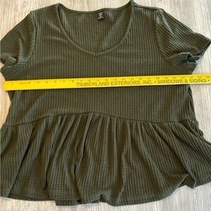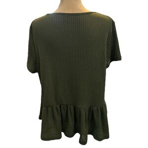 SHEIN Curve Plus V-Neck Waffle Knit Peplum Top Army Green SHEIN Tag 2XL =US 16W