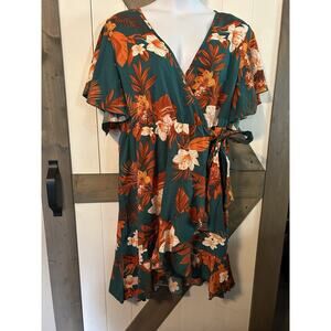 SHEIN Curve Teal Orange Floral Faux Wrap Dress 4X