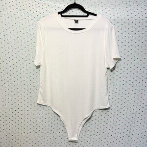 * SHEIN Curve White Ribbed Short Sleeve Round Neck Stretch Body Suit