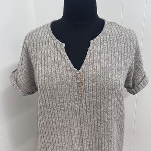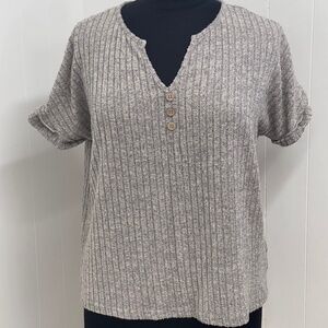 SHEIN Curve Women’s 2XL Gray Ribbed Knit Short Sleeve Button Front Top Casual