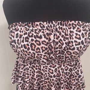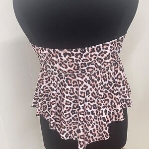 SHEIN Curve Women’s 2XL Leopard Print Strapless Swim Top Peplum Bandeau Tankini