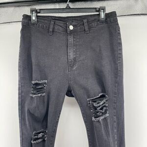 SHEIN Curve Women’s Black High Rise Stretch Distressed Skinny Jeans 0XL