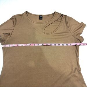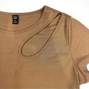 SHEIN Curve Women's Brown Short Sleeve Solid Cut Out Ribbed Tee Plus Sz 2XL EUC
