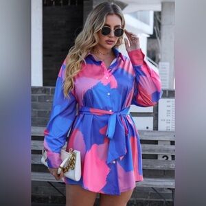 SHEIN Curve Women’s Celure Plus Colorblock Button Front Belted Dress Size 2XL