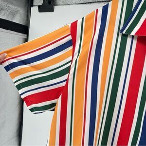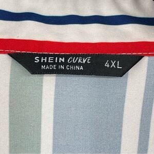 SHEIN Curve Women’s Rainbow Striped Collared Short Sleeve Button Front Top 4XL