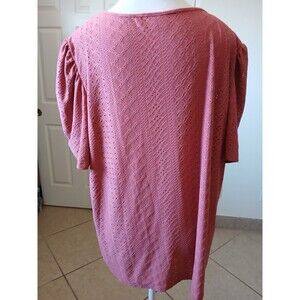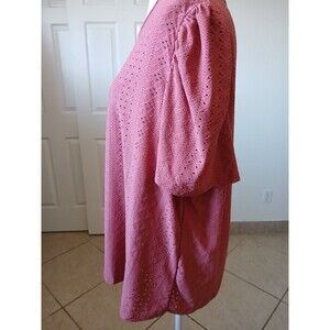 SHEIN Curve Women's Size 3XL Eyelet Blouse Pink Round Neck Short Petal Sleeve