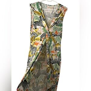 SHEIN Curve Zebra Flamingo Print Coverup Dress. Size XL. Knot bust and open front