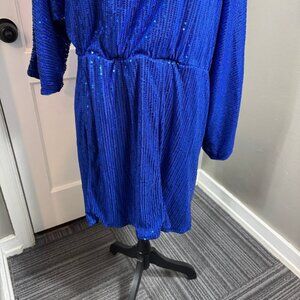 SHEIN Curve blue sequin asymmetric batwing cocktail dress. Sz 2X