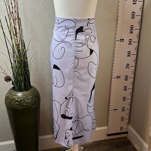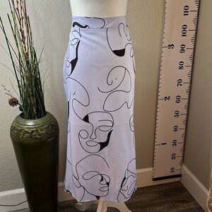 SHEIN Curve drama face print skirt back zipper half lined flared bottom Size 1X