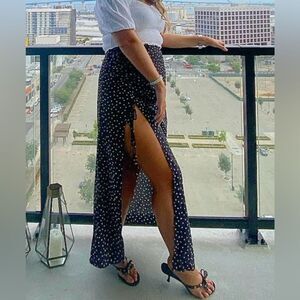 SHEIN Curve- high waisted black polka dot skirt with high slit- Size 1X
