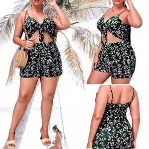 SHEIN Curve l Front-Tie Romper l Red or Green l 2X l EUC