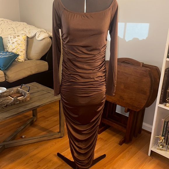 Brown off shoulders dress! Only worn once for a wedding. Like new dress!!