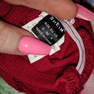 Chic deep red ribbed top from SHEIN. Ideal for versatile styling.
