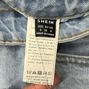 Get the perfect Y2K aesthetic with these distressed blue jeans from SHEIN. Size 4, with a mid-rise waist and distressed details for a cool, casual look.