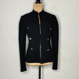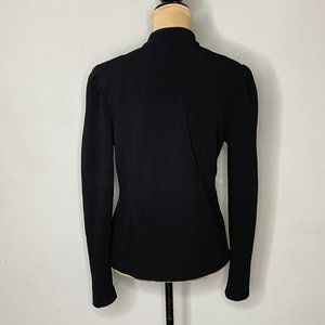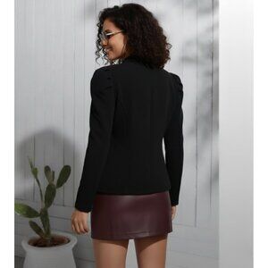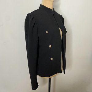 SHEIN Double Breasted Open Front Jacket Puff Sleeve Stand Collar Black Medium
