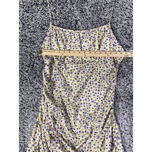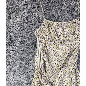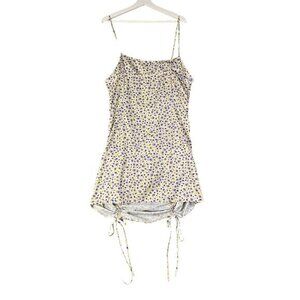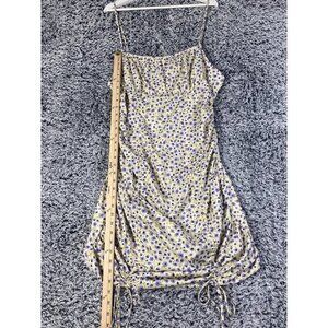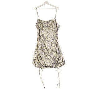 SHEIN Drawstring Knot Front Ruched Floral Dress Women 1XL Yellow Purple Milkmaid
