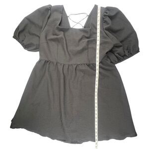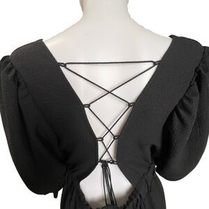 SHEIN Dress 3X Black Square Neck Romantic Tie Back Puff Sleeve Mini Black Dress