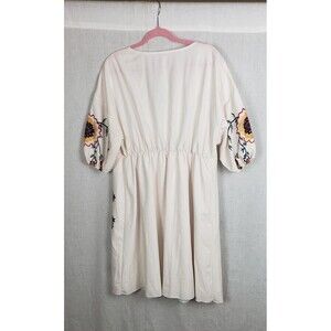 SHEIN Dress Womens XL White Multicolor Boho Floral Print Puff Sleeve Lined V Neck