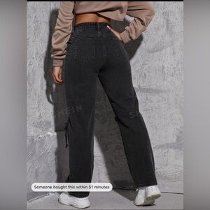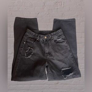 SHEIN EZwear High Waist Ripped Straight Leg Jeans Size XS (2) Black Denim