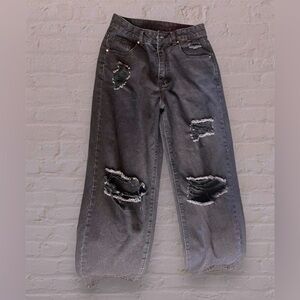 Shein Womens Gray High Rise Medium Wash Distressed Straight Leg Jeans Size XS