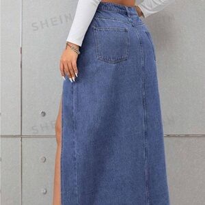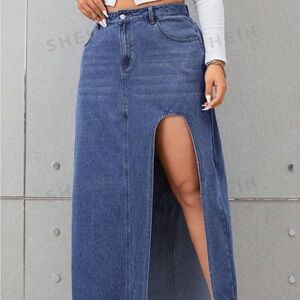 SHEIN EZwear Plus Split Thigh Denim Skirt