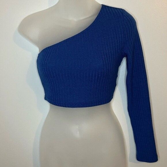 SHEIN Blue EZwear Ribbed One-Shoulder Crop Top Size S EUC