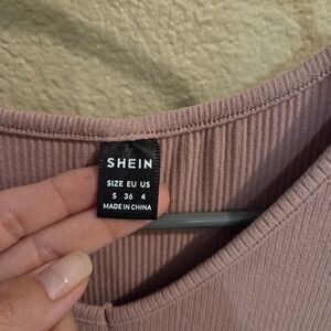 SHEIN EZwear V Neck Rib Knit Solid Pink Tee size Small Summer Spring