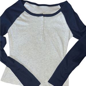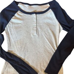SHEIN EZwear Colorblock Raglan Sleeve Half Botton Tee. NWOT. Size XS. Stylish and comfortable, this women's long sleeve top features a classic navy and gray color combination. Perfect for casual outings or relaxed days at home.