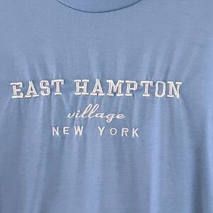 Light blue crewneck short sleeve T-shirt with East Hampton Village, New York embroidered on front