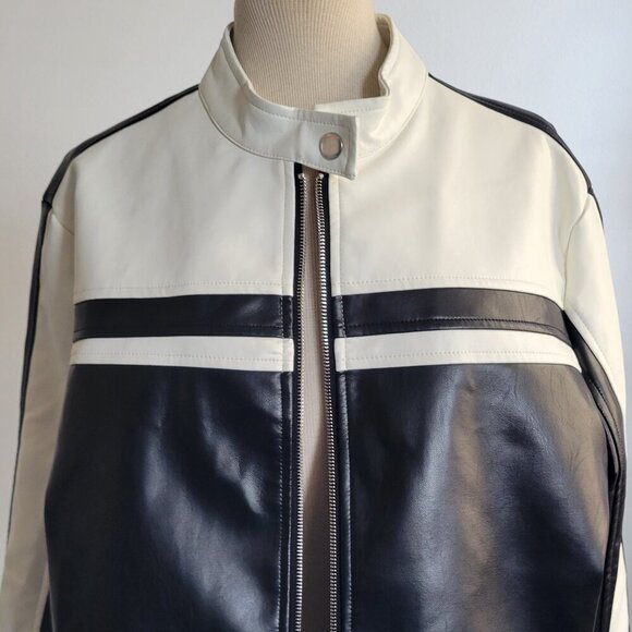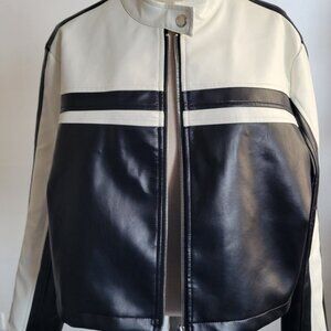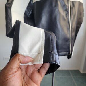 SHEIN Easy Wear Color Block B/W Vegan Leather Jacket (Size 8/10)