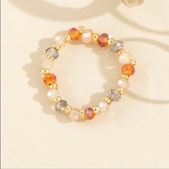 Shein elastic beaded ring with orange, grey, gold & creamy white beads.
