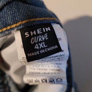 SHEIN Elastic Waist Daisy Embroidered Cuffed Jean Shorts SZ 4X