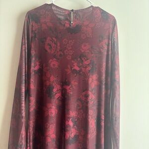 This elegant floral long sleeve dress features a rich burgundy color, perfect for any occasion. The intricate floral pattern adds a touch of sophistication and style. Sheer sleeves, stretch material but feels and looks fitting and rich. Worn once for wedding, excellent condition!