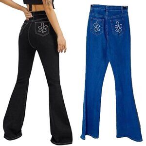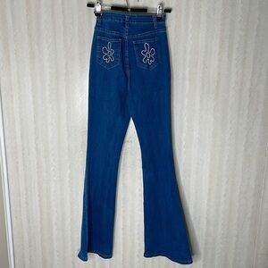 💙 SHEIN Embroidery Detail Flare Flower pocket bell bottom Jeans Size S