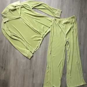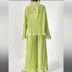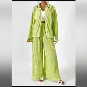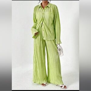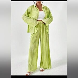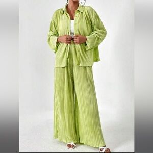 SHEIN Essnce Drop Shoulder Shirt & Wide Leg Pants large two piece matching set