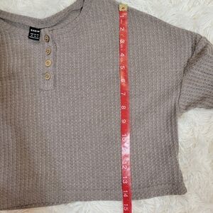 SHEIN Essnce Light Gray Button Half Placket Waffle Knit Tee Size XS