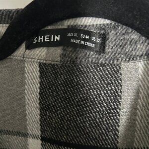 SHEIN, FLANNEL COAT, LG/EXLG BLK, GREY WHT