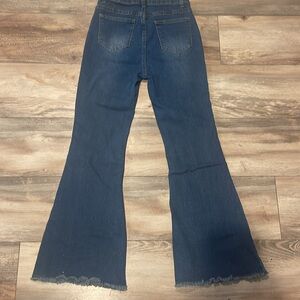 SHEIN Flare Jeans Size Small Petite (2-4) Short Medium Wash Fringe Flare Bottoms
