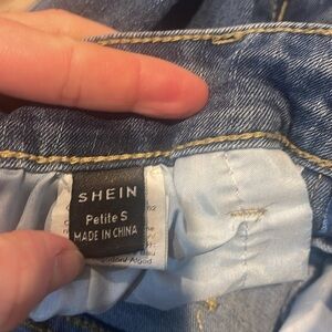 SHEIN Flare Jeans Size Small Petite (2-4) Short Medium Wash Fringe Flare Bottoms, used good condition.