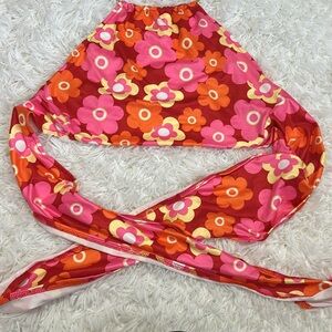 Keywords: Flower, Floral, Halter, Crop Top, Halter Wrap, Rave, Festival, Concert, Retro, Hippie, Halloween, Boho, Bohemain