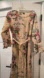 Elegant floral maxi dress. Features a cream base with pink and green floral patterns. Long sleeves with a tie waist. Slightly sheer, never worn.