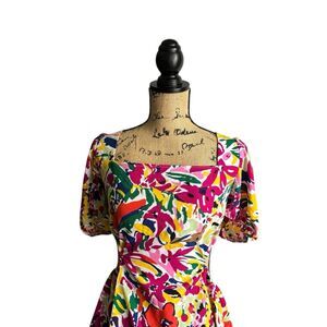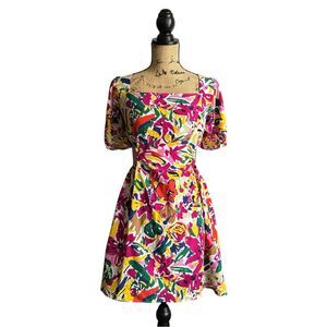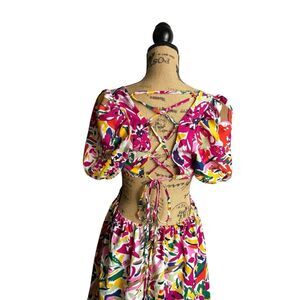 SHEIN Floral Print Lace Up Back Puff Sleeve Square Neck Dress XL NWT 6 0…