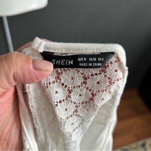 SHEIN Frenchy Contrast Lace Button Back Tee