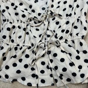 SHEIN Frenchy Polka Dot Print Tie Front Short Puff Sleeve Blouse Sz M