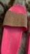Bold fuchsia slides with dazzling encrusted straps. Ideal for casual wear. Even better for a completed birthday look! Size 8 in womens • gently worn, but of course cleaned! • great for wide feet • comfy