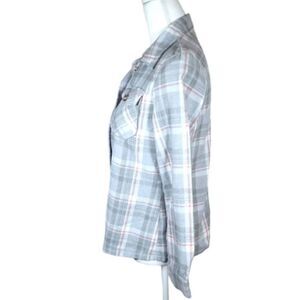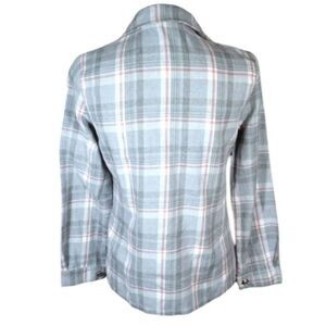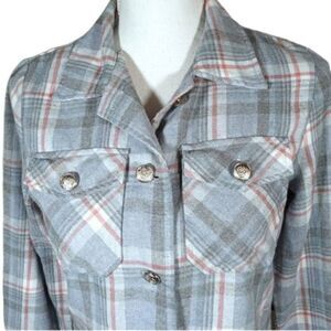 SHEIN GRAY, BLUE, & PINK PLAID FLANNEL SHIRT SZ.XS EUC.
