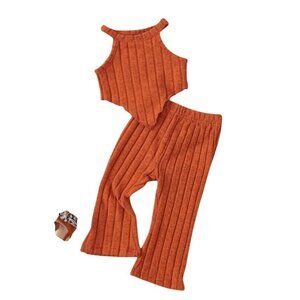 SHEIN Girls' Casual Thick-Knitted Ribbed Top, Flared Pants Set IN Orange - Size 2-3Y