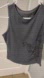 Trendy sleeveless crop top from SHEIN in a dark gray/charcoal color. Features a scoop neckline, fitted silhouette, and a bold black graphic design along the side for an edgy, Y2K-inspired look. Soft, stretchy fabric makes it comfortable and flattering—perfect for casual outfits or layering.