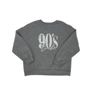 SHEIN Gray “90s Babe” Distressed Crew Neck Relaxed Fit Sweater