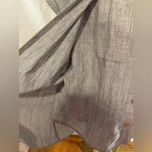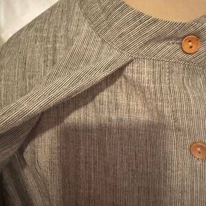 Stylish gray blouse with wooden buttons. It looks likes it is 2 pieces, but it’s just one. Short sleeves and a relaxed fit. Perfect for casual wear.